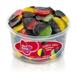 Well-known wine gum from Red band. Here you get a 1200g tin filled with delicious quality wine gums and licorice. In the special "zombie smile" version, you get the round smileys, but this time with a mixture of delicious licorice and delicate fruit wine gum. Two lovely halves which in combination create a piece of tasty candy.