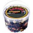 Haribo Matador Dark Mix Bucket er et cornucopia af lakridsgodteri fra Matadormix. Bucket indeholder sort Eldorado salt lakrids, sort pesetos lakrids-flavored vin gummier og skum med Salmiak-smag, lakridsæg med sort dragée, Cole Pesetos Wine gummies med Cola Flavor, Labre Larver og Dukatos søde licur.