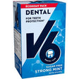 V6 Strong Mint indeholder xylitol, der reducerer dannelsen af plak, hvilket betyder, at tyggegummiet ikke kun er flot og forfriskende, men også har en forebyggende funktion mod tandskade. Desuden er tyggegummiet sukkerfri.