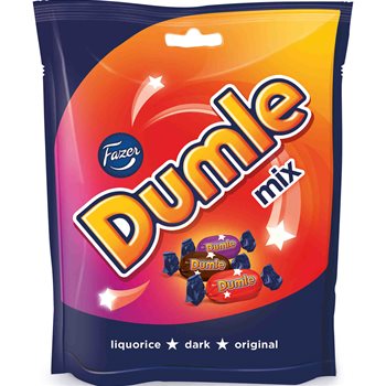 Mix di dumle con 220 grammi di caramelle dumle da Fazer in 3 diversi sapori deliziosi. Qui ottieni il dumle classico, un dumle con ripieno di liquirizia e un dumle con un rivestimento di cioccolato fondente. Buono come spuntino ospite.