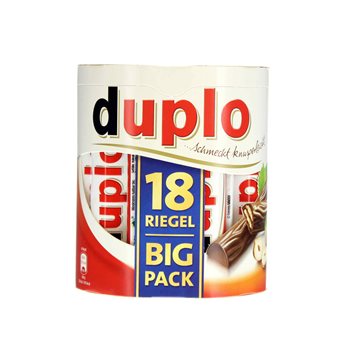 Ferrero Duplo è una deliziosa barretta di cioccolato, con un nucleo croccante e croccante di waffle, che è ricoperto di cioccolato al latte cremoso. Il piccolo spuntino al cioccolato è un oggetto popolare con adulti e bambini e per gli amanti del cioccolato può essere difficile tenere le dita lontane. Il pacchetto contiene 18 pezzi. Ferrero Duplo.