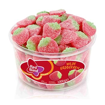 La fragola a fascia rossa è una gomma da vino alla fragola deliziosa e dolce che è cosparsa di zucchero. Red Band è un marchio di caramelle noto per le loro diverse gomme da vino e liquori. Questo è anche espresso in questo secchio, che consiste in meravigliose gengive di vino alla fragola. Puoi usare vantaggiosamente questa gomma da vino insieme ad altri in una ciotola di caramelle. La lattina contiene 950 grammi di gomma da vino.