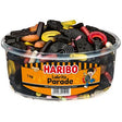 La parata di liquirizia da Haribo è una sfilata di squisita liquirizia in diverse varietà: liquirizia regolare, liquirizia combinata con gomma da vino e liquirizia ricoperta di zucchero croccante Dragé. La tavolozza del sapore varia dalla liquirizia dolce a più piccante. Un vero successo con tutti i fan della liquirizia.