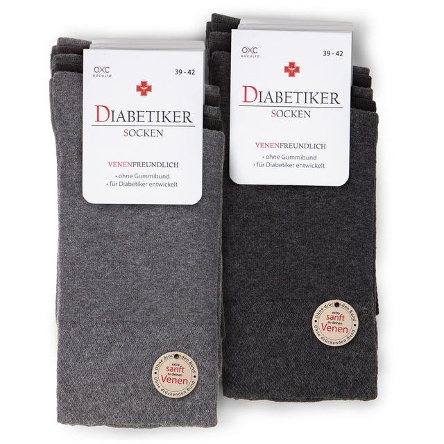 I nostri calzini diabetici sono realizzati con una classica miscela di cotone-polyester. Le migliori proprietà di entrambi i materiali, come il comfort e il comportamento dell'umidità del cotone, sono combinate con la traspirabilità e la durata del poliestere. Elastane rende il materiale inoltre elastico e garantisce una vestibilità confortevole e quindi un'esperienza di usura piacevole - tutto il giorno. Morbido e adatto alla pelle, adatto ai malati diabetici: evitiamo deliberatamente le cuciture di pressione e una cintura elastica stretta in questi calzini per la salute. Questo rende le calze particolarmente vene e ideali per i diabetici. Un alto contenuto di cotone garantisce anche un piacevole clima e un comfort ad alto consumo. La tua prima scelta per ... maggiori requisiti di comfort, tessuti sensibili o persone con disturbi circolatori arteriosi. Design dalla Germania in Europa: i nostri prodotti sono fabbricati esclusivamente nella moderna moderna fabbriche in Europa. Questo è l'unico modo per garantire che le nostre merci siano prodotte in conformità con gli standard europei in merito alle condizioni di lavoro, alla protezione ambientale, alla sicurezza e ai salari equi. Il prodotto è progettato presso il nostro quartier generale nella Germania meridionale.12 mesi Garanzia senza preoccupazioni: indipendentemente dal fatto che ci sia qualcosa di sbagliato nel prodotto o semplicemente non soddisfa le tue aspettative, ti garantiamo uno scambio libero durante i primi 12 mesi.