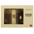 Cutia, care poartă numele Jakobsen Marzipan Bare, conține 4 bare de ciocolată diferite cu umplutură de marțipan. Aici obțineți atât ciocolată ușoară, întunecată, cât și albă, cu umplutură de marțipan și fiecare o decorare diferită deasupra. Bine ca o gustare pentru oaspeți.